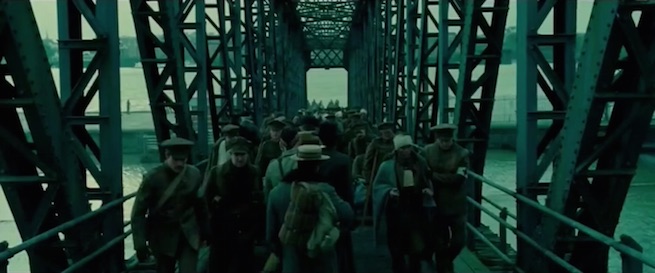 Here is Gal Gadot’s Wonder Woman and we also spy Chris Pine’s Steve Trevor behind her on a horse. We think she is guiding the soldiers into battle.