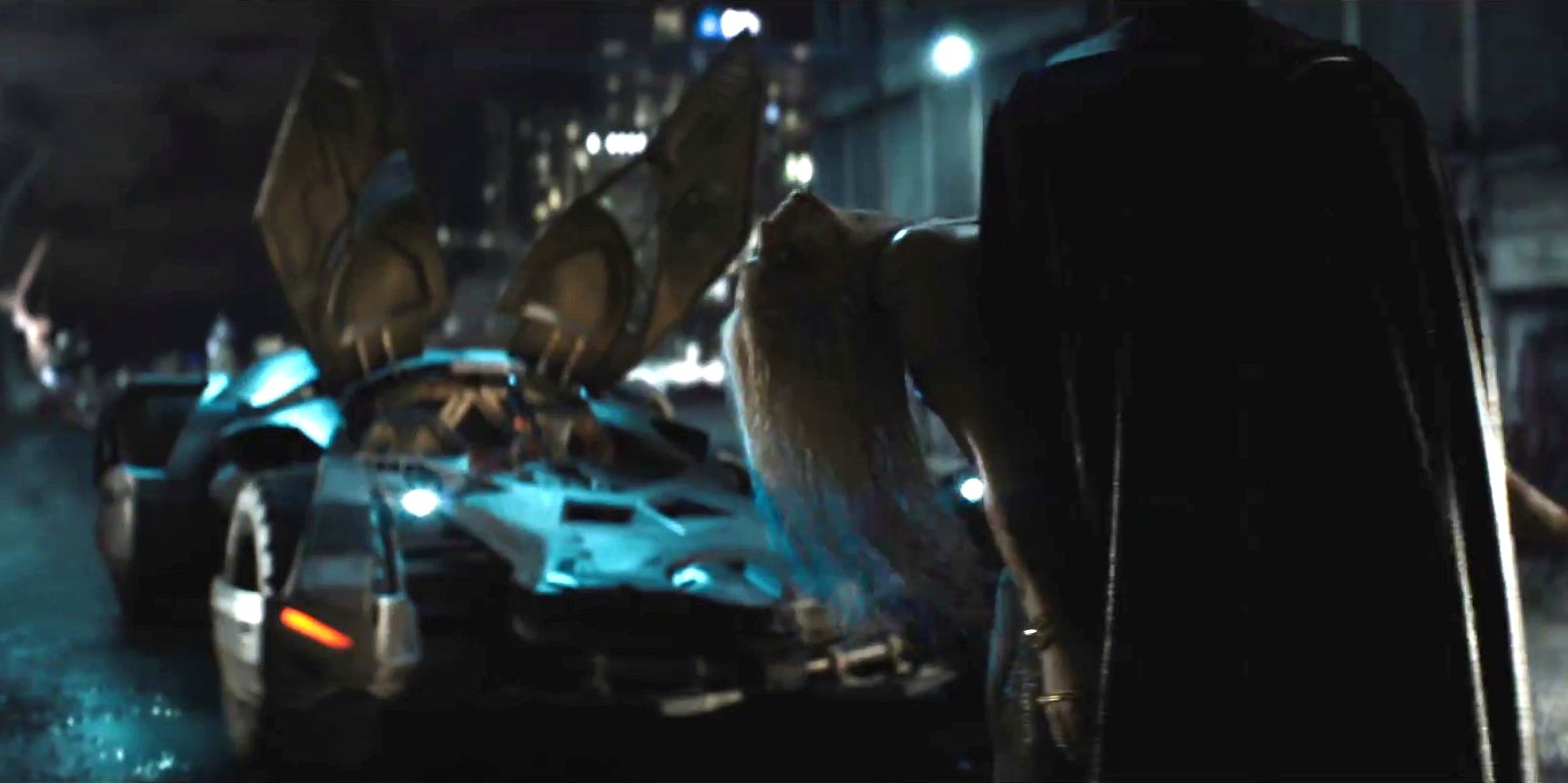 My theory about this shot is that this is when Harley gets caught because we are going to see everyone get caught and it will probably be near the beginning of the movie. I think that Batman only has Harley because Joker must have thrown her out of the car. I know that sounds terrible, but it is something the Joker would do to Harley.