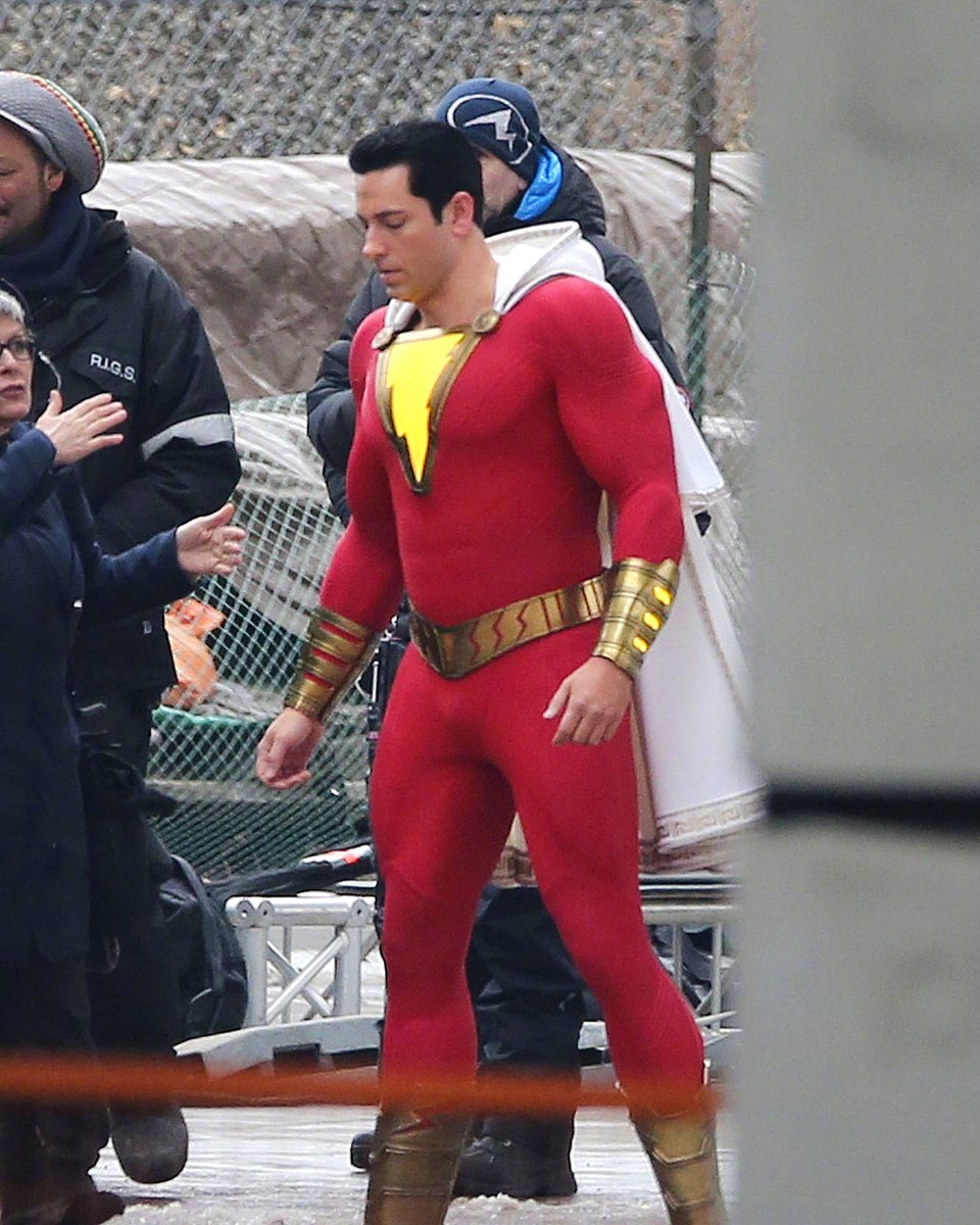Hey everyone! A lot has been coming out on Shazam lately and it is insane. We’ve received a few short videos from veiwing bystanders and a couple up close shots of his suit. One of these images gets a great look at the symbol on his chest, the cap, and the suit in general. Check it out below!