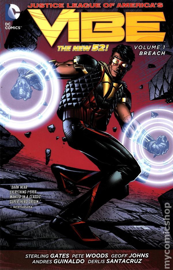 Welcome back! Today we will be reviewing Justice League of America’s Vibe Vol 1 which is written by Sterling Gates, Geoff Johns, Andrew Kreisberg. And art by Pete Woods.