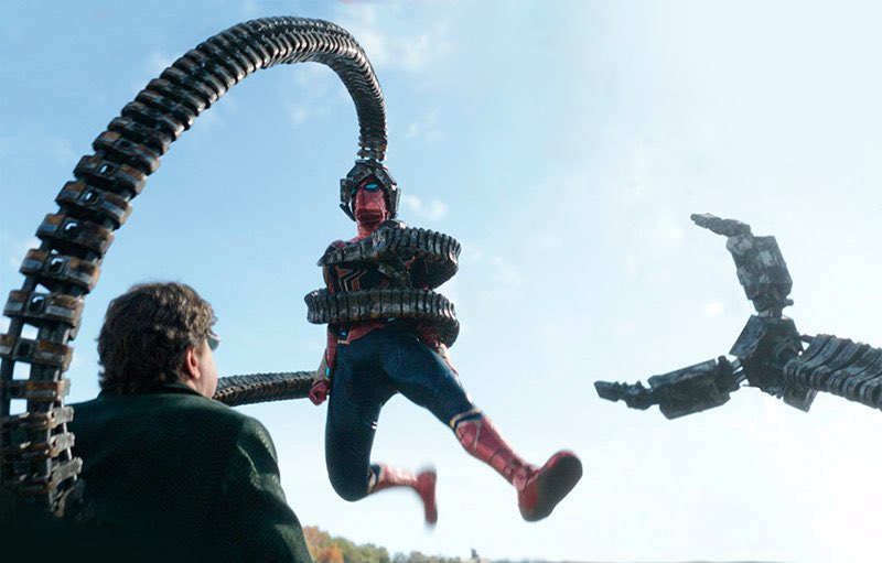 Also, to tide fans over until the film’s release, a new still from the film came out featuring a scene where Alfred Molina’s Doctor Octavius has Tom Holland’s Spider-Man in his claws that is remarkably familiar to Spider-Man 2.