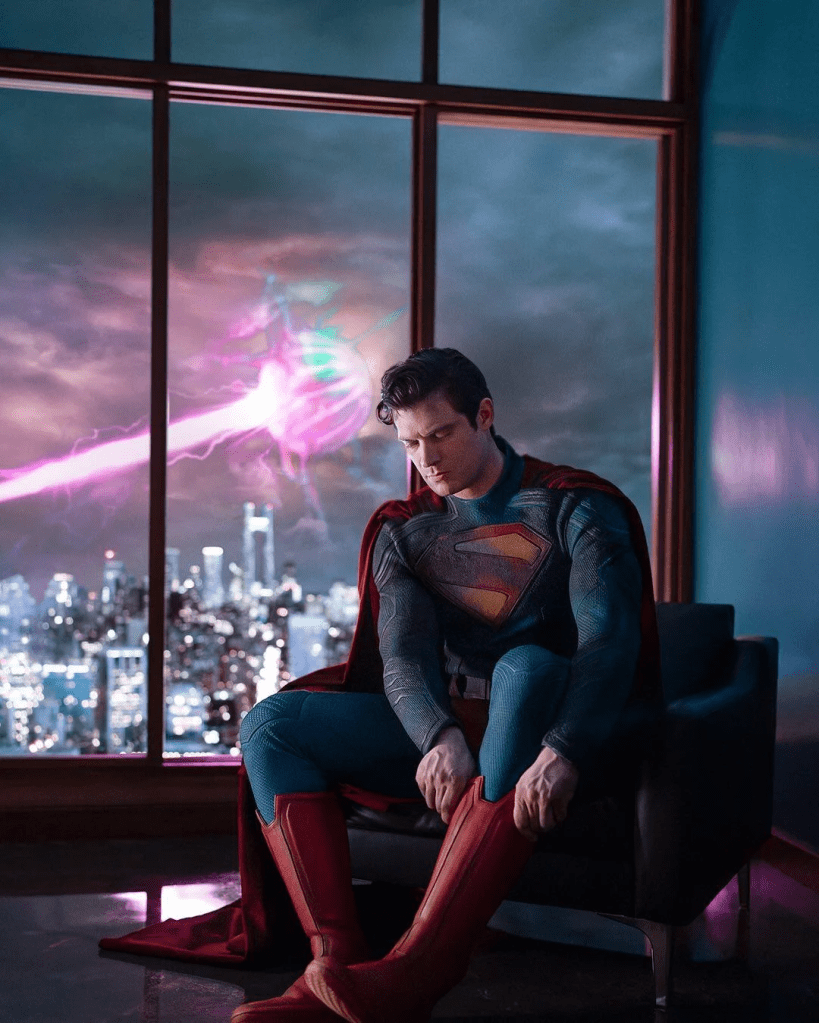 First up, the full Superman suit on David Corenswet. Also notice that it is not battle damaged like we had seen in the reveal photo Gunn released. We get a really good look at the brighter colors of the suit and cape along with the belt. Plus, we did it…
